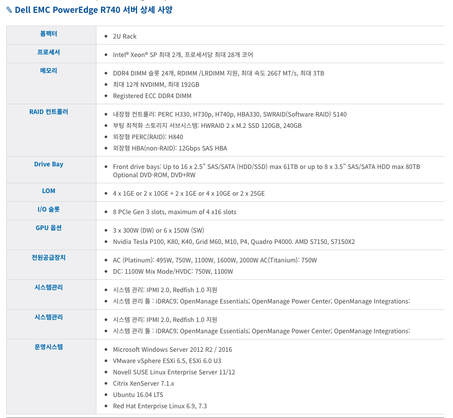 2. DELLEMCR640 vs R740의비교(각 항목별 차이와 용어 기준)