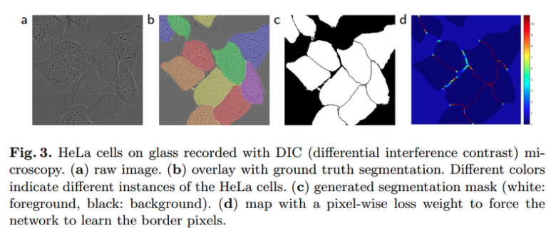 - 세포를 검출해 내기 위해서는 경계 또한 예측을 해야하는데, 픽셀 단위로 label을 매긴다라고 하면 데이터셋에 세포나 배경보다는 절대적으로 세포 간 경계의 면적이 작다.